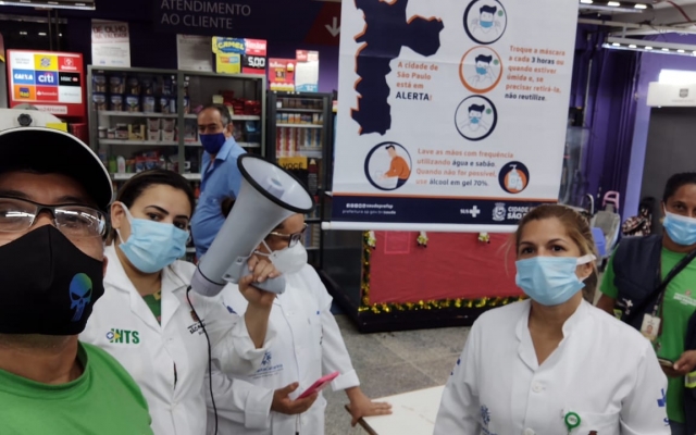 Com o número de casos de Covid-19 aumentando e deixando a área da Saúde em alerta máximo durante esse mês de dezembro, a prefeitura de São Paulo convocou as unidades para a MEGACAMPANHA CONTRA A COVID-19 nesta sexta-feira e no sábado (11 e 12/12/2020). Os profissionais do INTS REGIÃO SACA participaram da Megacampanha em estações de trem e metrô, comércio, ruas, ônibus, as ruas dos bairros foram alvo de orientação e sensibilização a população.